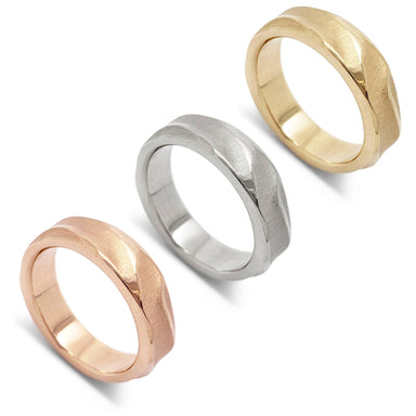 Facet | 14kt gold faceted wedding ring. Handcrafted 14kt gold ethical wedding ring with a matte brushed texture. The facets of this unique weddi...