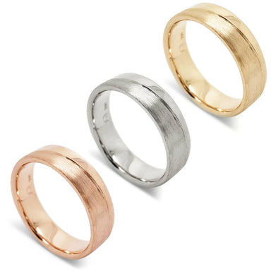 Wave | Handcrafted 14kt gold wedding ring with a carved line. Handcrafted 14kt gold custom wedding ring with a hand carved asymmetrical line an...