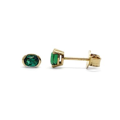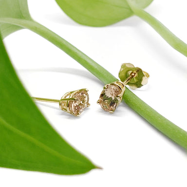 Oval Morganite Studs | 10kt yellow gold earring studs with soft pink morganite. Hand assembled 10kt yellow gold earrings set with oval cut peach...