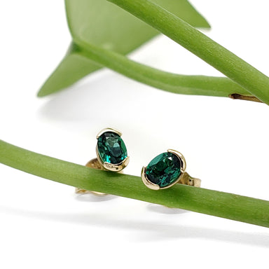 Jade Studs | 14kt yellow gold jade studs. Handcrafted 14kt yellow gold stud earrings with prong-set soft green jade. This item comes packaged in e...