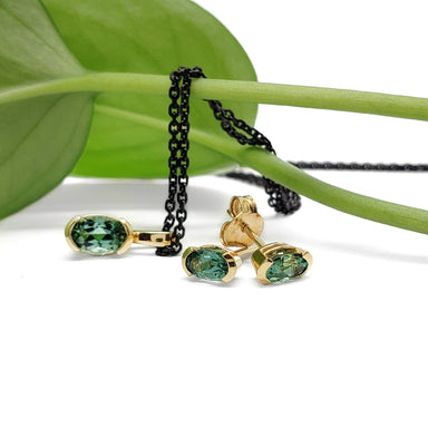 Baguette Cut Tourmaline Pendant | 14kt yellow gold tourmaline pendant. Handcrafted 14kt gold custom pendant with an elongated baguette cut deep gr...
