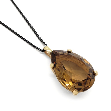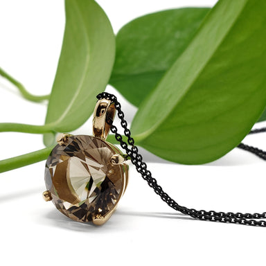 Smoky Quartz Pendant | 14kt yellow gold and smoky quartz pendant. Handcrafted 14kt yellow gold pendant featuring a stunning 15.30ct round cut ...