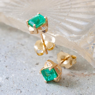 Clover Earrings | Handcrafted 14kt yellow gold stud earrings set with emeralds and Canadian diamonds. Handcrafted 14kt yellow gold stud earri...