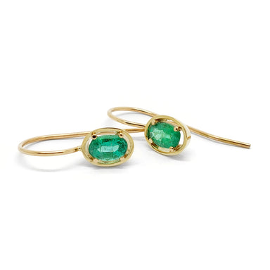 Oval Emerald Earrings | Hand fabricated 18kt yellow gold earrings set with oval cut emeralds. Hand fabricated 18kt yellow gold minimalist ear...