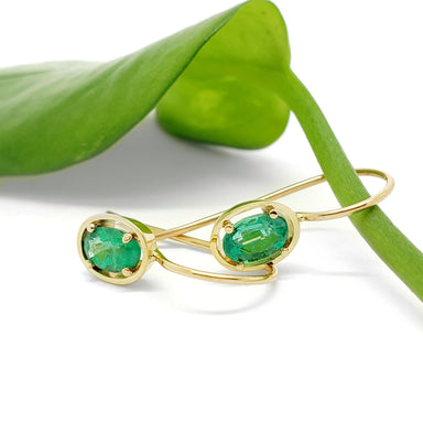 Compass Emerald Earrings | Hand fabricated 14kt yellow gold earrings set with oval cut emeralds. Handcrafted 14kt yellow gold earrings set wi...