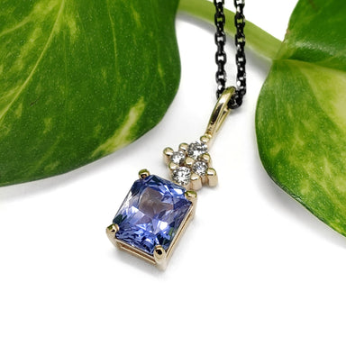 Sapphire & Diamond Pendant | 14kt yellow gold pendant with a blue sapphire and lab diamonds. Handcrafted 14kt yellow gold pendant featu...