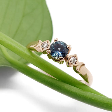 Moraine Rose | Handcrafted 14kt rose gold engagement ring with an Australian sapphire and Canadian diamonds. Handcrafted 14kt rose gold eng...
