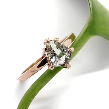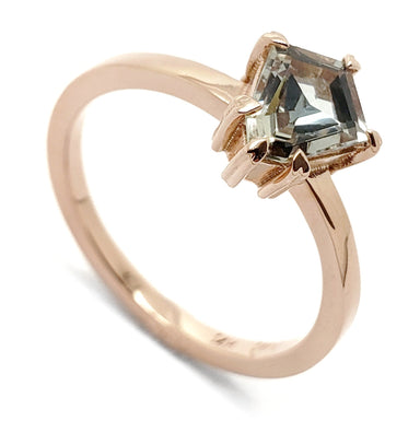 Moraine Rose | Handcrafted 14kt rose gold rose cut sapphire and Canadian diamond engagement ring. Handcrafted 14kt rose gold ethical engagemen...